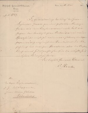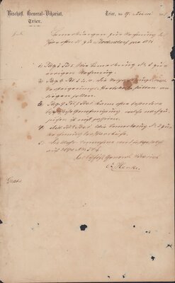 Der Regierungs-Präsident / II. Pr 5552 / Coblenz den 1. Juli 1892 teilte der Pfarrei Bodendorf mit, dass gemäß Art 23. Nr. 3 Wertpapiere und Sparbücher der Pfarrei Bodendorf außer Kraft gesetzt werden.