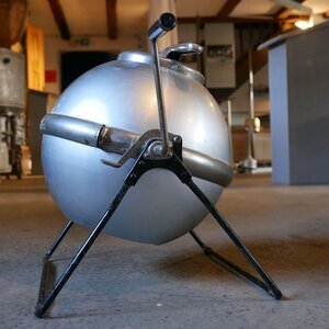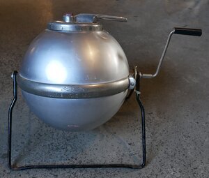 Die Kugelwaschmaschine - auch Waschkugel genannt - besteht aus einer in einem Gestänge aufgehängten Kugel in die durch eine wasserdicht verschließbare Öffnung heisses Wasses, Lauge sowie die zu waschende Wäsche eingeführt wird. Die Wäsche wird durch das Drehen der Kurbel und die dadurch ausgelöste Bewegung der Kugel gereinigt. Diese Kugelwaschmaschinenen dürfen nicht mit der von Moore erfundenen und 1855 patentierten Kugelwaschmaschine verwechselt werden. Letztere besteht aus einem viereckigen Bottich in den zur Wäschereinigung Holzkugeln eingebracht werden. Obwohl schon seit den 1920er Jahren Kugelwaschmaschinen mit Elektroantrieb angeboten wurden (vergleiche hierzu die Kugelwaschmaschine SCANDOWnvon 1925 im Heimatmuseum der Stadt Teltow) wurden selbst in den 1950er Jahren die meisten Kugelwaschmaschinen für den Handbetrieb produziert. Die Kugelwaschmaschinen der 1950er Jahre sind eine Nischentechnologie, da zu dieser Zeit schon wesentlich größere Bottich- und Trommelwaschmaschinen sowie immer mehr auch Waschvollautomaten zur Verfügung standen. Dass Kugelwaschmaschinen zu dieser Zeit vor allem für den Handbetrieb gebaut wurden, kann auch damit zusammen hängen, dass sie für Einpersonenhaushalte und einkommensschwache Haushalte, die nicht mehrere Monatsgehälter für eine Waschmaschine ausgeben konnten, gebaut wurden. Später könnten sie auch fürs Camping und für Datschas genutzt worden sein. Das Exemplar der japanischen Marke "Kamome" – japanisch für "Seemöwe" – stammt aus den 1950er Jahren. Der "Kamome Home Washer" basiert trotz seines futuristisch anmutenden Äußeren auf reiner Handarbeit: Die hohle Aluminiumkugel von ungefähr 30 cm Durchmesser wird mit Lauge und Wäsche gefüllt und per Handkurbel in Bewegung gesetzt. Diese Waschmaschine ist weder elektrisch betrieben und beheizt, noch hat sie eine Wasserzufuhr oder Spül- und Schleuderfunktion. Dafür ist sie wenig störanfällig, leicht und kompakt gebaut und auch im Betrieb ressourcenschonend.