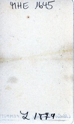 Foto einer jungen Frau, die ein helles, 2 teiliges, mit Rüschen verziertes Kostüm u. einen großen ausladenden, mit Blumen geschmückten Hut, trägt. Über der Bluse trägt sie noch eine helle Wollstola, die sie mit der rechten Hand festhält. Sie steht vermutlich in einem Studio vor einem dunklen Vorhang und schaut rechts an der Kamera vorbei