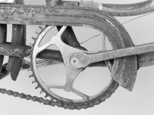Das Damenfahrrad wurde von der Firma Göricke aus Bielefeld hergestellt. Das Rad hat eine Größe von 28 Zoll und ist hellgrün lackiert. Die Rahmennummer 2.253.229 steht für die Produktion im Jahr 1952. Die Torpedo Nabe ist mit der Jahreszahl 51 (1951) gestempelt. Die beiden Abziehbilder „Göricke“ am Unterrohr bzw. hinteres Schutzblech sind nur noch ansatzweise zu erkennen. Für die Sicherheit sorgen der Rücktritt sowie eine Stempelbremse. Von der ehemaligen Besitzerin ist noch ihr Einkaufskorb auf dem Gepäckträger befestigt und der Rockschutz aus Plastik am Hinterrad montiert.