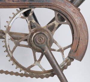 Das Damenrad hat eine Größe von 28 Zoll. Am Sattelrohr ist die Rahmennummer 901 096 per Hand eingeschlagen. Damit lässt sich das Herstellungsdatum auf die Jahre 1945/46 eingrenzen. Der Rahmen und die Schutzbleche haben eine schwarze Lackierung, die durch feine weiße und blaue Streifen aufgelockert ist. Zwei Abziehbilder am Rahmen sind nur noch schemenhaft zu erkennen. Das Triumph Steuerkopfschild ist aus Metall gefertigt und zeigt das Firmenlogo. Am Steuerkopf ist noch eine Lenkerfeststellschraube verbaut, was zu der Vermutung führt, dass der Rahmen noch aus einer Vorkriegsproduktion stammt. Die Freilaufnabe "Torpedo" stammt von Fichtel und Sachs. Zwei Bremsmöglichkeiten sorgen für Sicherheit. Rücktritt- und eine Handbremse (Stempelbremse). Gegen Diebstahl ist das Rad durch ein Ring bzw. Speichenschloss gesichert. Es funktioniert heute noch einwandfrei (Siehe Abb)