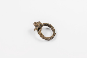 flacher Ring in der Struktur eines Flechtgewebes; Ringaufsatz: geschwungene, halbrunde Form mit vier "Schlingen", vermutlich Chamäleon-Darstellung