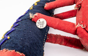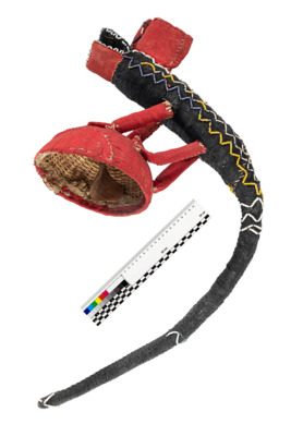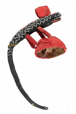 Tanzaufsatz mit Tierdarstellung (Echse), mit Perlen bestickt (blau, weiß, rot, gelb)
