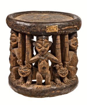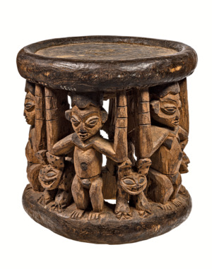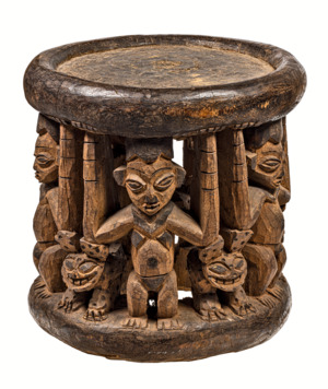 Hocker mit Menschen und Tierdarstellungen