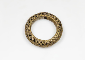 Hohlreif mit glatter Innenseite und verzierter gerundeter Außenseite, Flechtmuster nachempfunden, Gelbguß oder Guß in verlorener Form