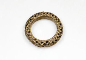 Hohlreif mit glatter Innenseite und verzierter gerundeter Außenseite, Flechtmuster nachempfunden, Gelbguß oder Guß in verlorener Form