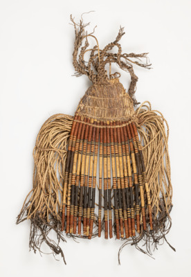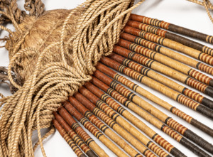 19 farbig umwickelte Stäbchen mit Pflanzenfasern zusamnengebunden