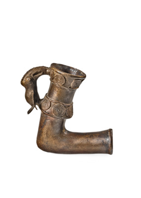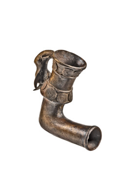 Pfeifenkopf mit Spiralen als Verzierung, Griff in Form eines Vogels