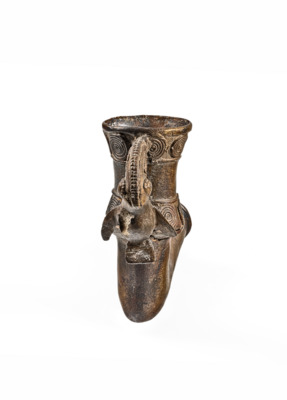 Pfeifenkopf mit Spiralen als Verzierung, Griff in Form eines Vogels