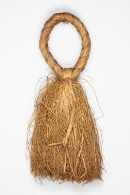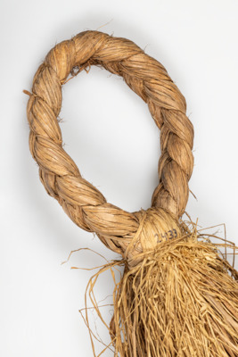 geflochtener Bast, zu einer Schlaufe zusammengebunden, in losen Bast auslaufend