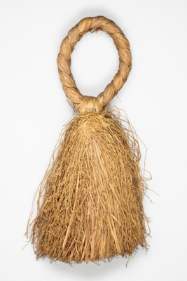 geflochtener Bast, zu einer Schlaufe zusammengebunden, in losen Bast auslaufend