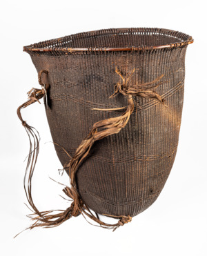 dunkelbrauner Korb mit 2 Trageriemen aus Pflanzenfaser