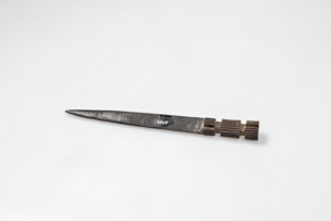 langer aus Ebenholz gefertigter Haarpfeil, runder Griff mit Rillenmuster