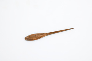 Hautschaber mit flachem Griff, der zum Ende hin in eine flache Nadel spitz zuläuft