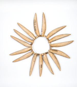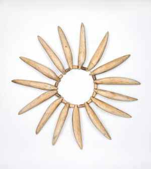 Halsschmuck aus Holz für Initianden, Kette mit 15 Holzstücken, die bis 12 cm lang sind
