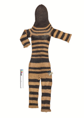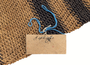 Natur und dunkel gefärbt in Blockstreifen; handschriftlich mit Bleistift in Inv.-Buch: "eines Medizinmannes" u. "inneres Kamerun"
