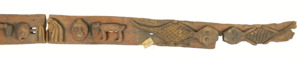 geschnitzter Fries mit Tierdarstellungen und Menschenköpfen im Relief