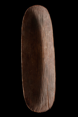 Flache Schale aus leichtem Holz, rot gefärbt; um Nahrungsmittel aufzubewahren, schwere Lasten zu transportieren oder auch Babys zu tragen.