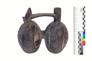 Doppelgefäß: zwei miteinader verbundene Behälter, einer davon in Gestalt eines Menschen