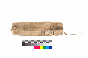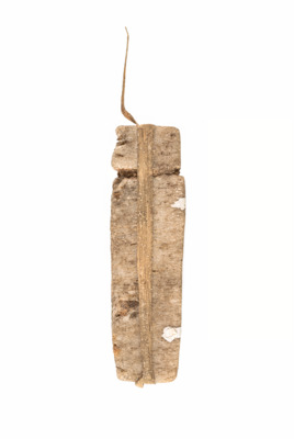 zwei langgestreckte dünne rechtwinklige Salzblöcke, mit Schnur aus Pflanzenfasern zusammengehalten