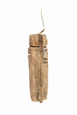 zwei langgestreckte dünne rechtwinklige Salzblöcke, mit Schnur aus Pflanzenfasern zusammengehalten