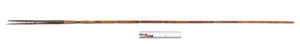 vier Spitzen jeweils mit weireihig angeordneten, geraden Widerhaken durch geflochtene Pflanzenfaser festgebunden
