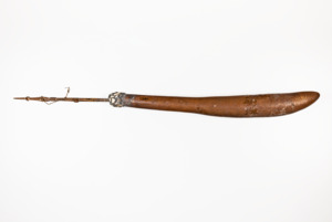 Die Kalebasse dient zur Aufbewahrung von Kalk (zum Genuss der Betenuss gebraucht), sie kann durch die Öffnung (mit Muschelscherben, Schildplatt, Coix lacrimae und Samen besetzt) befüllt werden, der Stab dient als Verschluss und zum Herausholen des Kalk (durch ringförmige Einkerbungen)