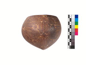 Ösen um Band zum Aufhängen zu befestigen, außen reichhaltig eingravierte Muster