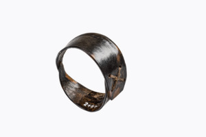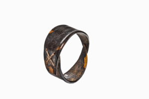 zwei längliche Teile, unten zusammengebunden, können oben auseinander gezogen und so durch das Ohrläppchen gesteckt werden