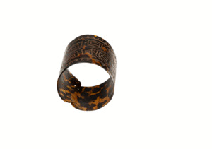dunkelbrauner Schildpatt, zu umfassenden Ring gebogen, mit geometrischen Verzierungen
