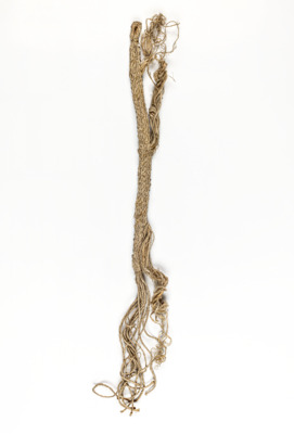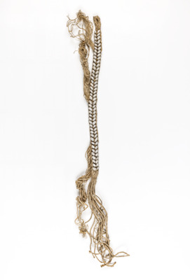 Schmuckband aus Pflanzenfaser geflochten, auf der Oberseite sind zweireihig Koixkörner angebracht