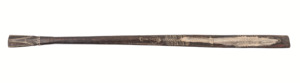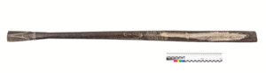 einseitige Einritzungen, die mit weißlichem Material ausgefüllt sind, großer weißlicher Fleck (L 41 cm) an einem Ende