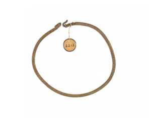Ein zum Ring gebogener Draht mit zwei ineinandergreifenden Verschlusshaken. Der Ring ist durchgängig mit einem weiteren Draht umwickelt.