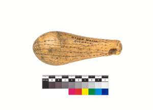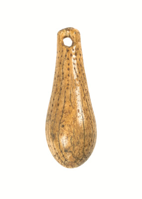 Eiförmiges, nach oben hin längliches Amulett, Loch zur Befestigung am oberen Ende (D 1 cm)