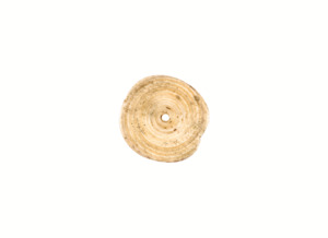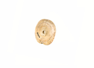 Ein runder Konusschneckenboden mit einem Loch in der Mitte. Laut Inventarbuch ist dieser Konusschneckenboden ein Teil eines Ohrgehänges.
