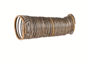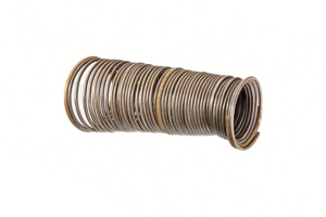 Spirale aus ca. 5 mm dickem Eisendraht, an den Enden und in der Mitte mit dünnem Kupferdraht umwickelt