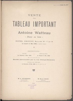 Vente d'un tableau important par Antoine Watteau "Diane au bain", Hôtel Drouot, 11 Mai 1896