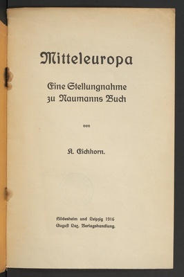 Mitteleuropa : eine Stellungsnahme zu Naumanns Buch / von K. Eichhorn