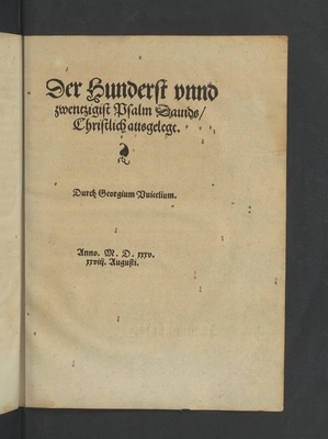 Der Hunderst unnd zwentzigist Psalm Davids, christlich ausgelegt / Durch Georgium Wuicelium