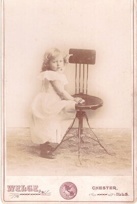 Foto Mädchen im Fotoatelier lehnt an einem Stuhl