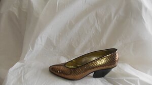 Goldene Pumps aus imitiertem Schlangenleder