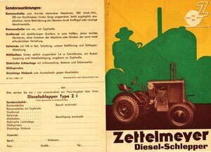Werbebroschüre für Diesel-Schlepper Z 1 und Z 2 der Firma Zettelmeyer