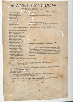 ANNI A MVNDO || CONDITO EX HISTORIA SACRA PER || Theobal. Billi. suputati. ANNO. 24.||