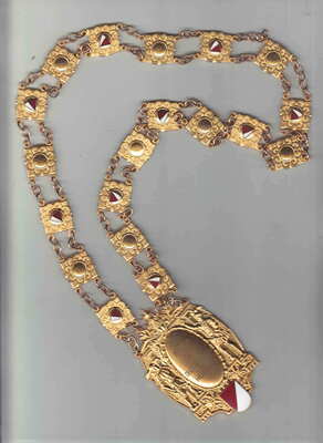 Ehrenkette "Ritter des goldenen Humors" verliehen an Oberbürgermeister Jockel Fuschs von Wilhelm vom Hofe in Hagen 10.01.1981