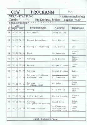Sitzungsablauf Carneval Club Weisenau 23.01.2000 - Hausfrauennachmittag