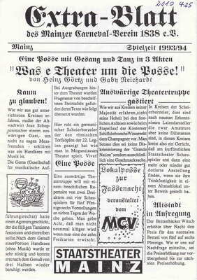 Fastnachtsposse Mainzer Carneval Verein 1994 - "Was e Theater um die Posse" (Extrablatt vom MCV)