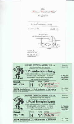 Einladung Mainzer Carneval Club 2006 - Prunkfremdensitzung (u. Eintrittskarte)