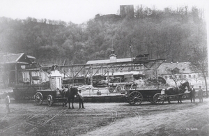 Die Sayner Hütte um 1912, Einfahrt mit Erzkarren
