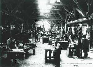 Meister und Arbeiter der Modellschreinerei. Concordia-Hütte Mülhofen 1930