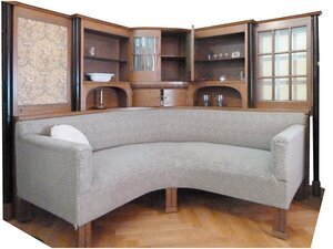 Eckvitrine mit Sofa aus der Mainzer Möbelfabrik Anton Bembé